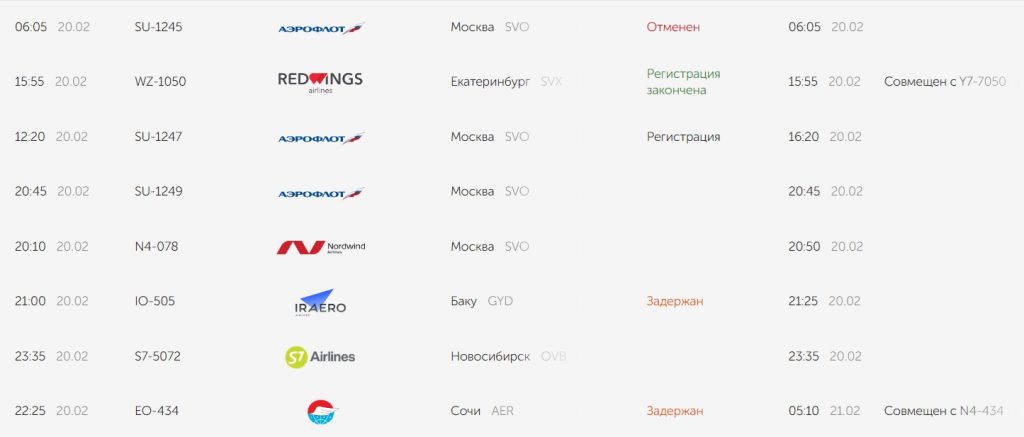 Согласно данным электронного табло, в настоящее время из-за позднего прибытия в Оренбург задержанными остаются несколько рейсов.