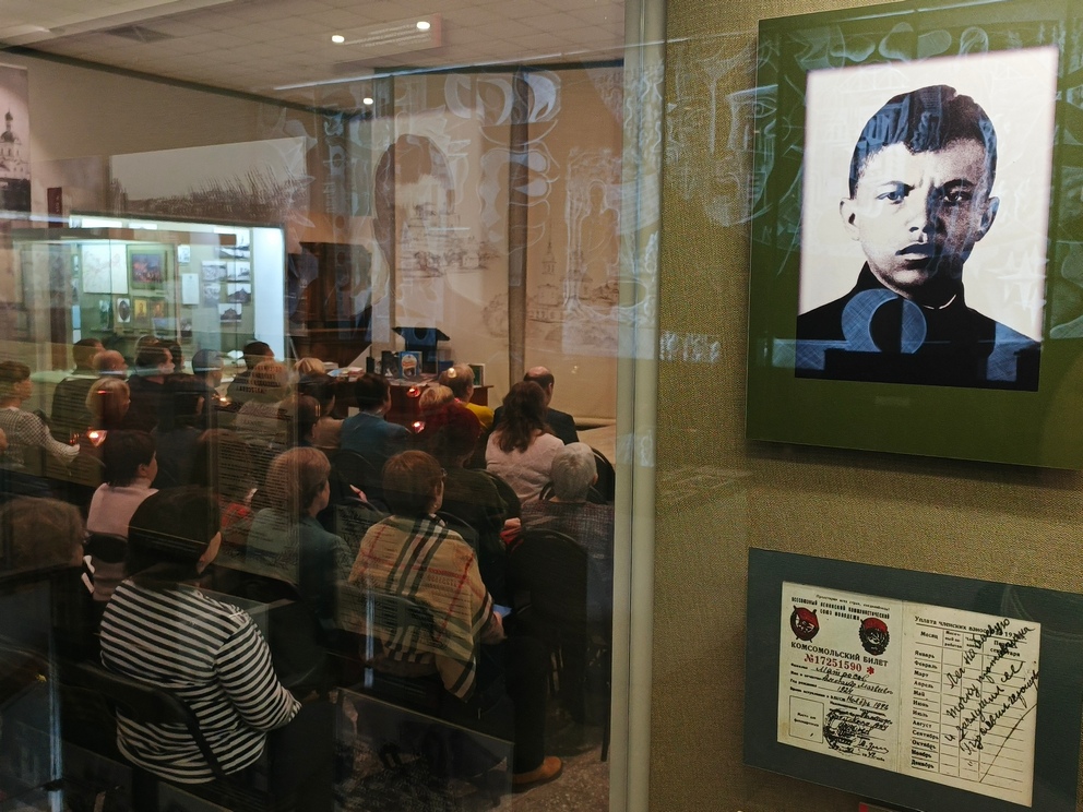 На открытие передвижной экспозиции «Александр Шморель – студент, патриот, антифашист, святой» в краеведческом музее Великих Лук собрались представители образовательных учреждений и библиотек города, епархии Русской православной церкви, историки и общественники.