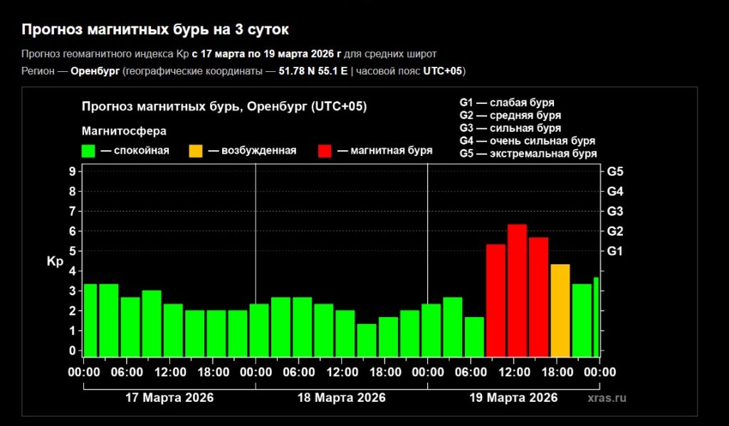 В Оренбургской области магнитная буря ожидается около 8 часов утра и продлится до вечера.