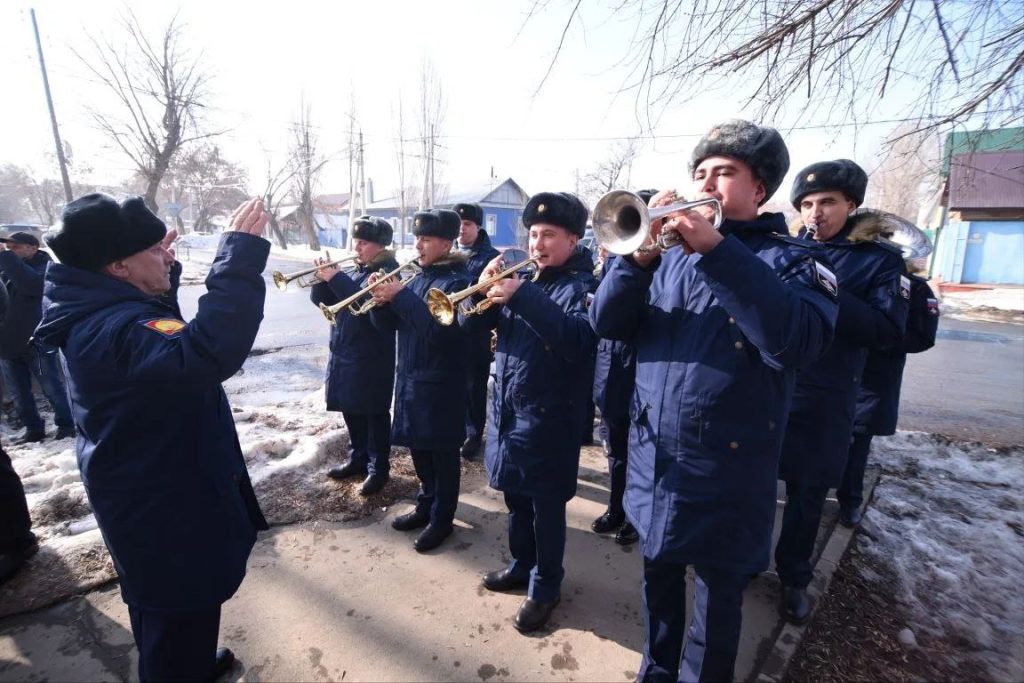 Участники церемонии отметили его жизненный путь как пример служения Родине, трудолюбия и стойкости. Перед ветераном торжественным маршем прошли курсанты Оренбургского президентского кадетского училища, а военный оркестр исполнил марш «Прощание славянки».