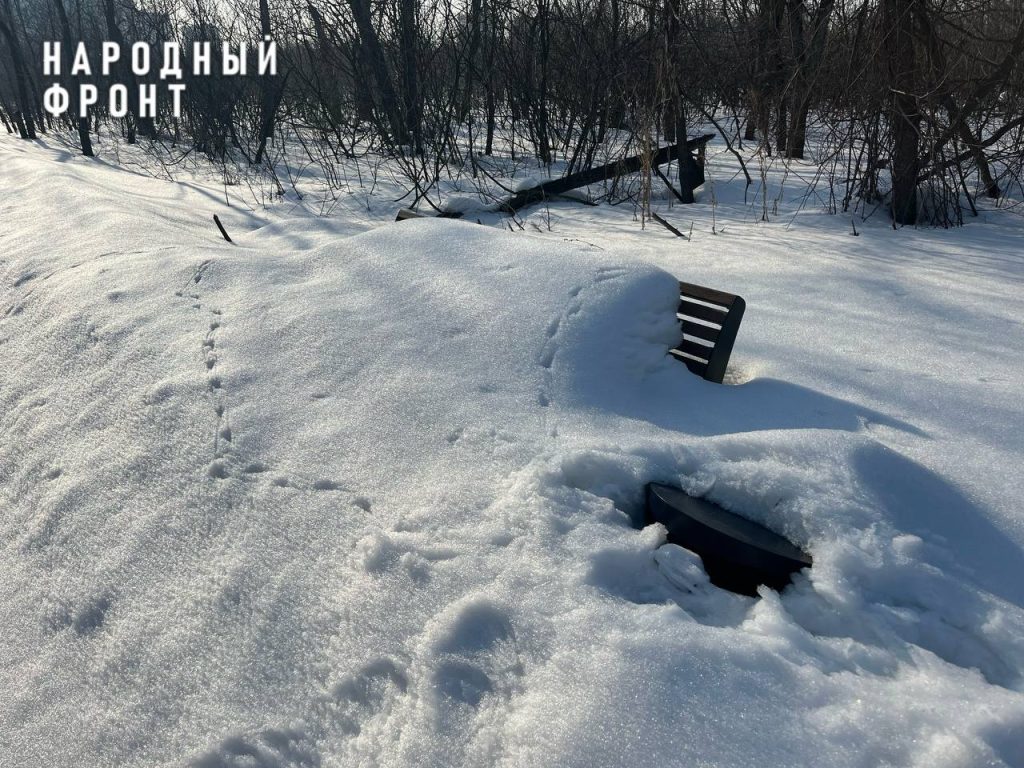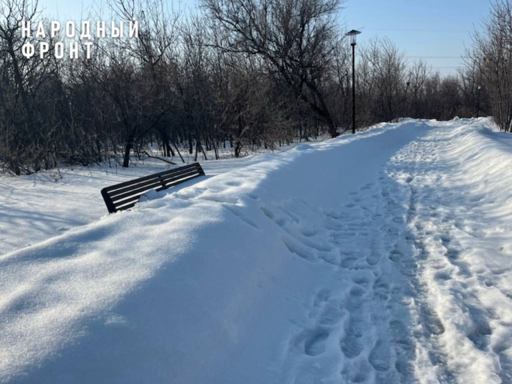 Ранее информацию о ситуации в парке общественники вместе с фотографиями направляли главе округа. Спустя месяц от заместителя главы поступил ответ, что в парке якобы регулярно убирают снег, а ремонт проведут при благоприятных погодных условиях.