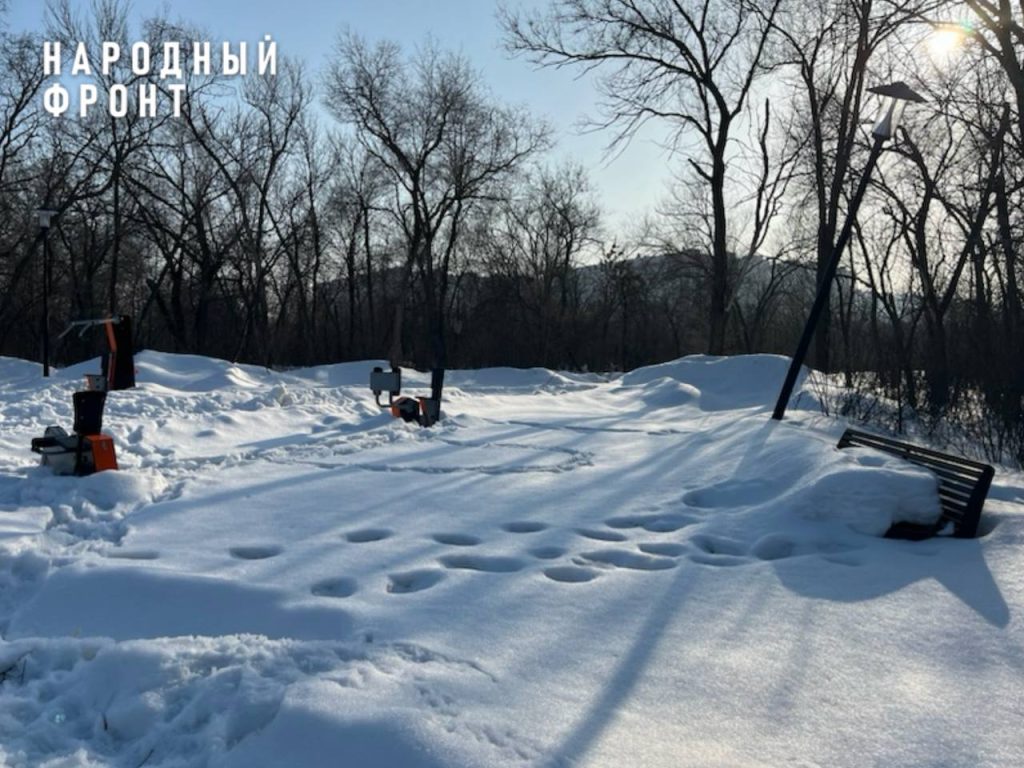 Как сообщает ОНФ, в парке «Берёзка» не расчищены от снега детская и спортивная площадки, сломана детская горка и некоторые фонари. Речь идет о неизменной запущенности общественного пространства, реконструкция которого обошлась бюджету почти в 70 миллионов рублей.