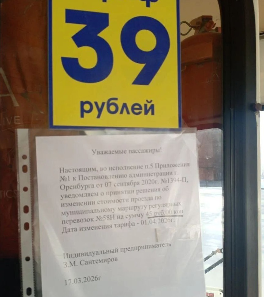В Оренбурге частные перевозчики, работающие по нерегулируемому тарифу, продолжают поднимать стоимость проезда. В автобусе №58Н с апреля она увеличится до 45 рублей. Информация об этом появилась в соцетях.