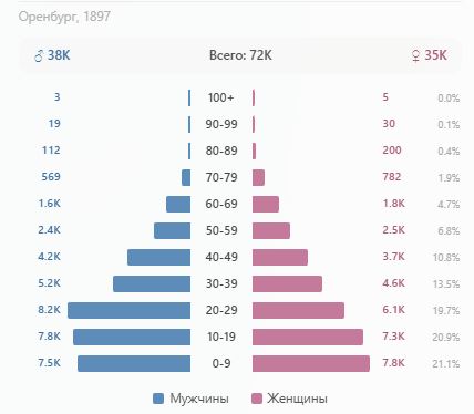 В 1897 году в Российской империи провели первую и единственную всеобщую перепись населения, в которой участвовала и Оренбургская губерния. Кто проживал в то время в центре, кого было больше — мужчин или женщин, молодых или пожилых, прочитайте в нашей статье.