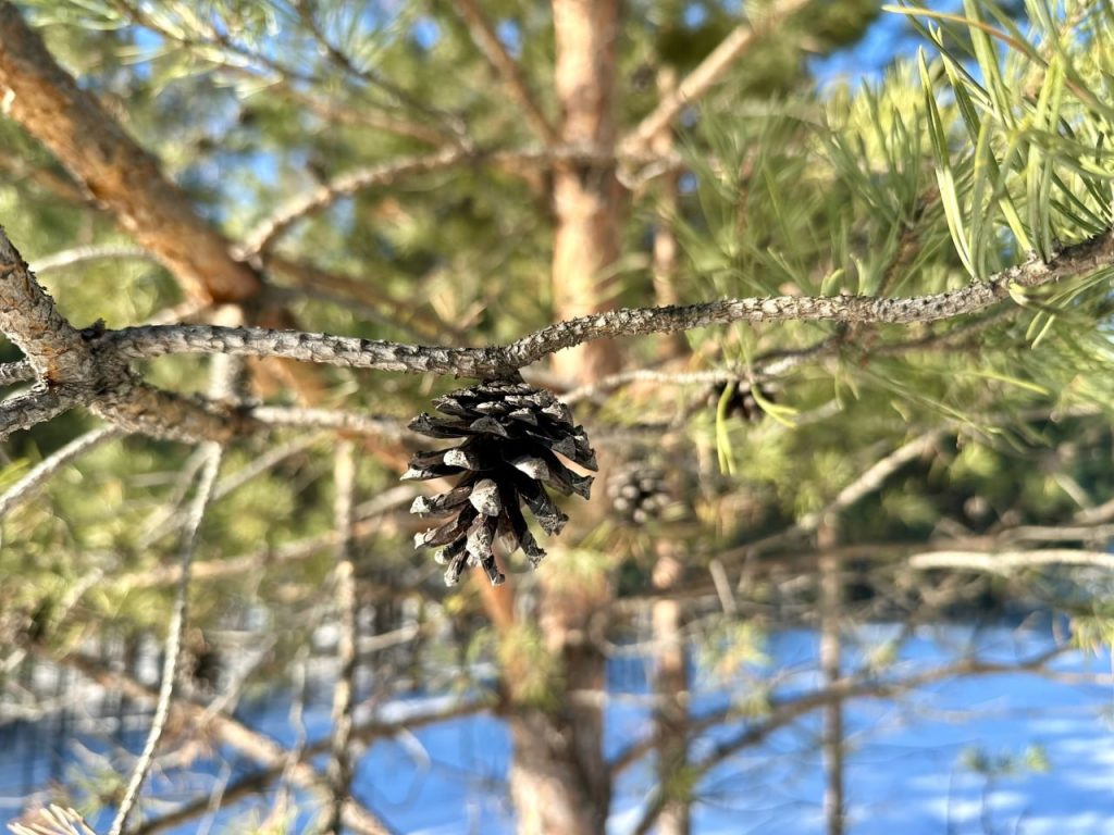 Параллельно в сосновых массивах бора проходит процесс естественного возобновления леса. Шишки сосны обыкновенной, созревшие в прошлом году и сохранявшиеся на ветвях в течение зимы, начинают активно раскрываться.