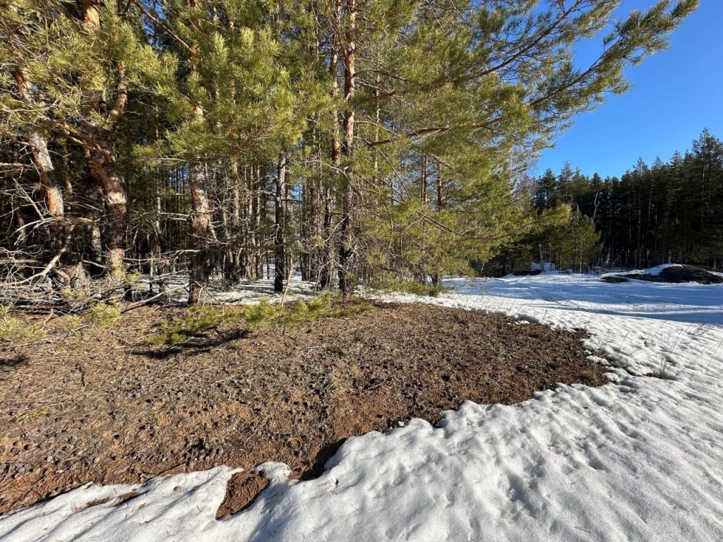 На открытых участках снег уже сошел полностью. Однако под пологом леса сохраняется средняя толщина покрова около 25 см. Такая разница характерна для лесных массивов: кроны задерживают прямое солнечное излучение, а подстилка из хвои и листьев замедляет теплообмен.