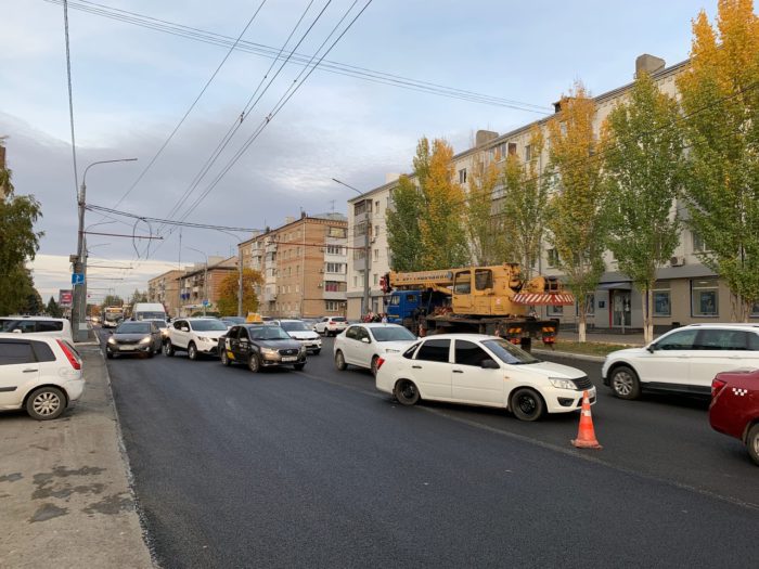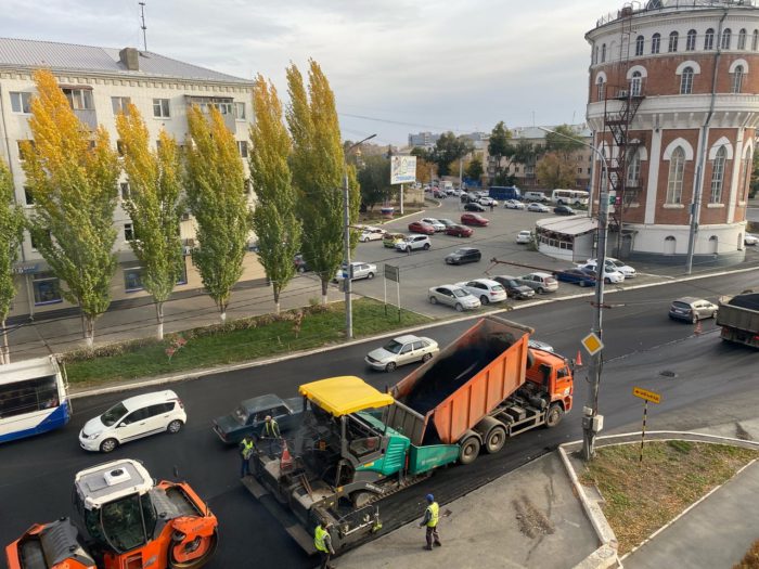 Так, сегодня, 6 октября, на проспекте Победы продолжает работать дорожная техника. Асфальтоукладчик и катки завершали работы на участке от улицы Степана Разина до 8 Марта. Дорожники укладывали верхний слой покрытия.