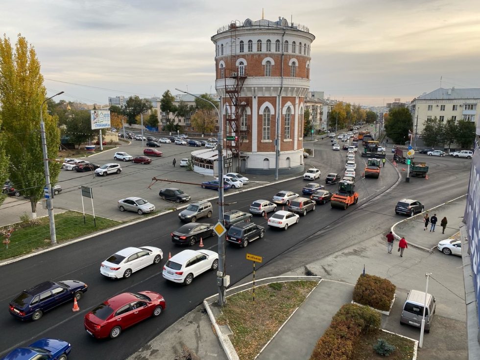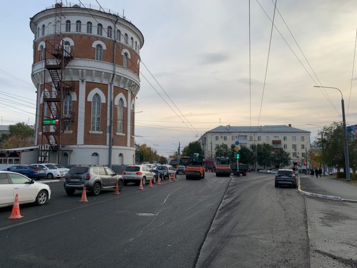В Оренбурге дорожный ремонт на проспекте Победы стал причиной огромных пробок. На магистрали завершают укладку верхнего слоя нового асфальта. К часу пик техника добралась аккурат до водонапорной башни.