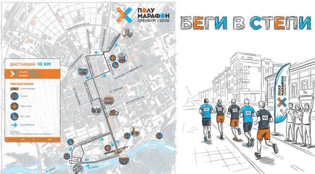 Полумарафон Оренбург состоится 25–26 апреля. Участники титульного события выйдут на дистанции 3 км, 10 км и 21,1 км. 25 апреля на набережной откроется стартовый городок, где пройдут детский забег и «забег ползунков». Спортивную программу дополнит городской фестиваль. 26 апреля — главный день полумарафона. Организаторы забега «Полумарафон Оренбург» подготовили большой аудиогид по истории города и его достопримечательностям.