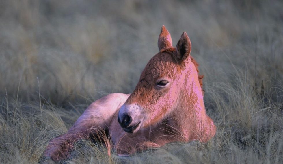 В Оренбургской области на территории Центра реинтродукции лошади Пржевальского в конце марта родился розовый жеребенок.