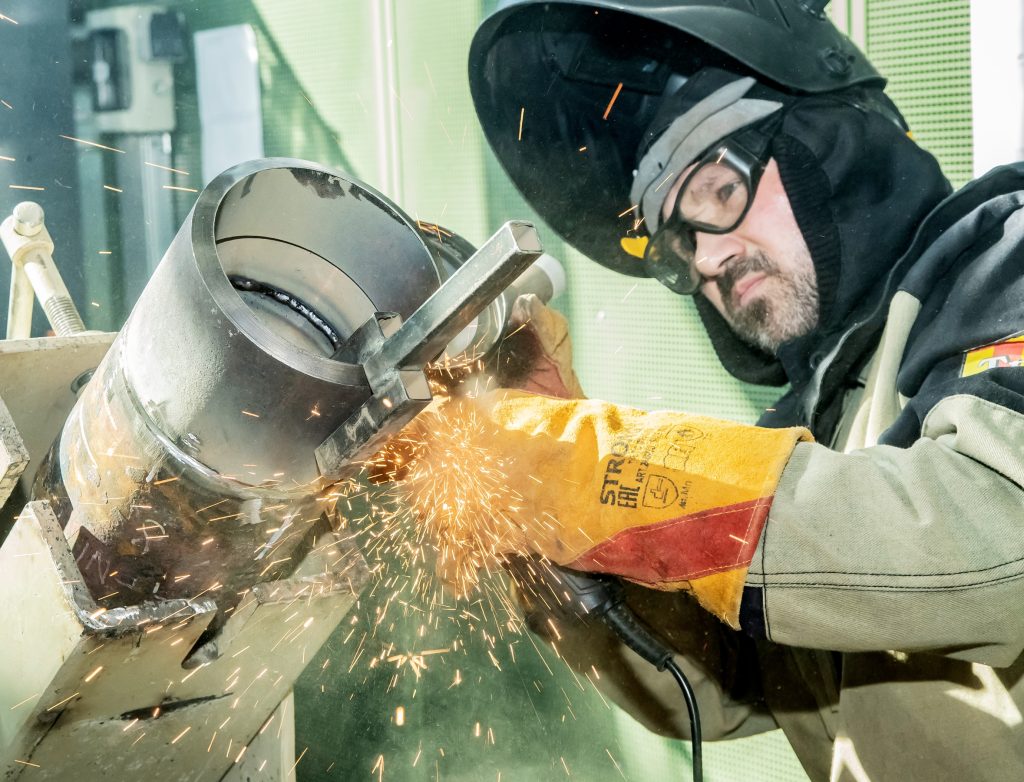 За победу среди сварщиков боролись десять человек. На теоретическом экзамене они ответили на 20 вопросов, на практике сварили катушку диаметром 168 мм под углом 45 градусов (стенка 8 мм)