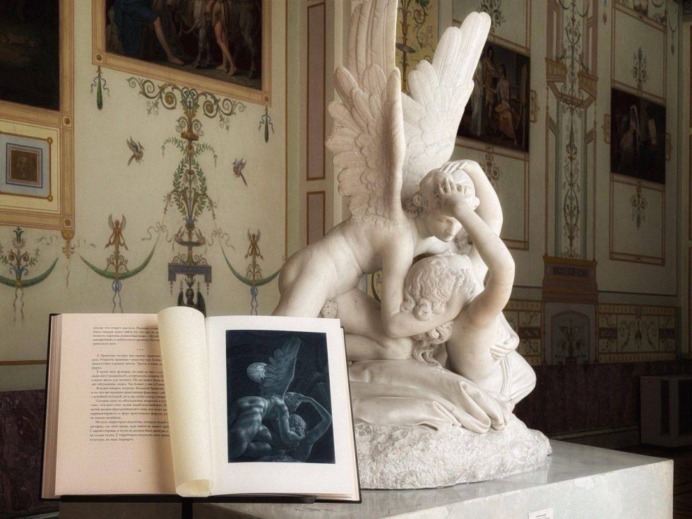 Примечательно, что на самой необычной экспозиции всего один экспонат — это издание «Михаил Пиотровский. Эрмитаж земной и небесный». Книга вышла к 80-летию руководителя Государственного Эрмитажа. В нем собраны статьи Михаила Пиотровского и снимки фотохудожника Юрия Молодковца. Проект показывает связь между материальным и духовным аспектами жизни самого известного в мире музея, описывая историю и коллекцию Эрмитажа.