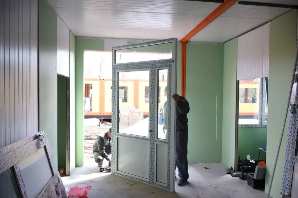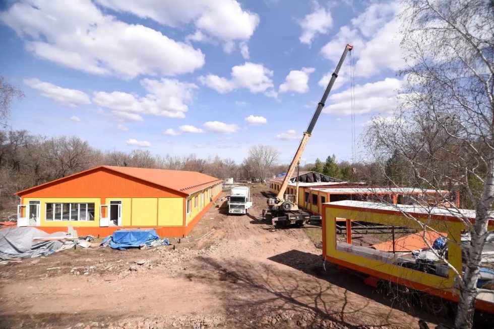 Накануне, 8 апреля, рабочие завершили установку модулей второго спального корпуса. Там идут отделочные работы. Параллельно продолжается капремонт ремонт столовой, продовольственного склада, бойлерной, летних душевых и медпункта.