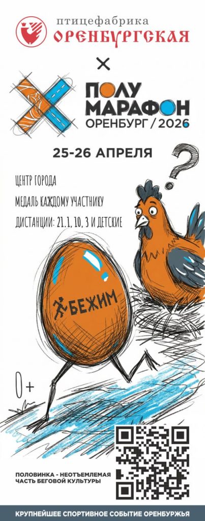 Оренбург готовится к одному из самых заметных спортивных событий этой весны — «Полумарафону Оренбург». Но в этом году город буквально “заговорил” о забеге самым неожиданным способом — через… яйца. Птицефабрика «Оренбургская» совместно с командой организаторов выпустила в продажу один миллион яиц с лаконичной, но энергичной надписью: «Бежим!».