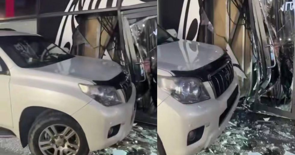 Авария произошла накануне в вечернее время. На улице Инверторной Toyota врезалась в стеклянную стену торгового павильона.