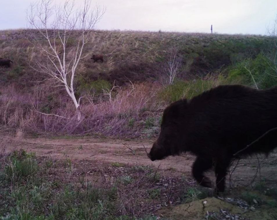 На этот раз в установленную в заповеднике фотоловушку угодили оживлённые и очень активные кабаны.
