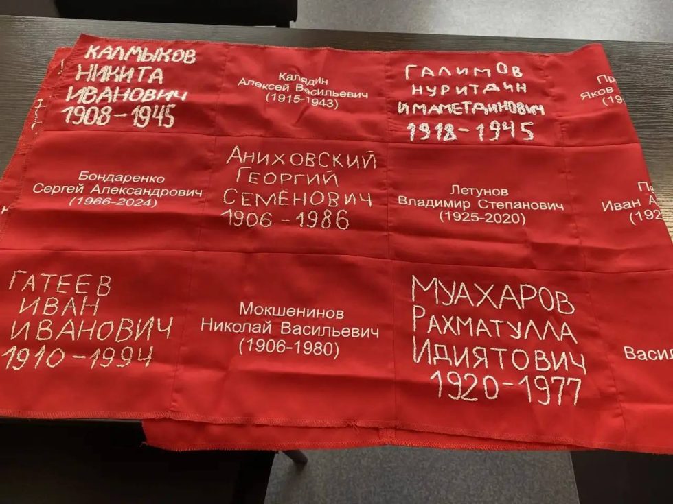 В школе №89 города Оренбурга делают Знамя Памяти. На красной ткани белыми нитками учащиеся вышили имена героев — Великой Отечественной войны, локальных войн, специальной военной операции.