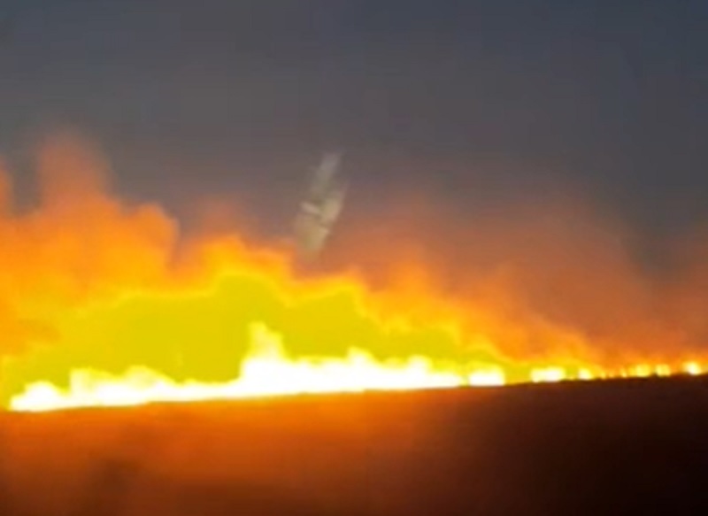 Степной пожар разгорелся на полях вдоль трассы Оренбург-Орск. Очевидцы делятся кадрами разгулявшейся огненной стихии.