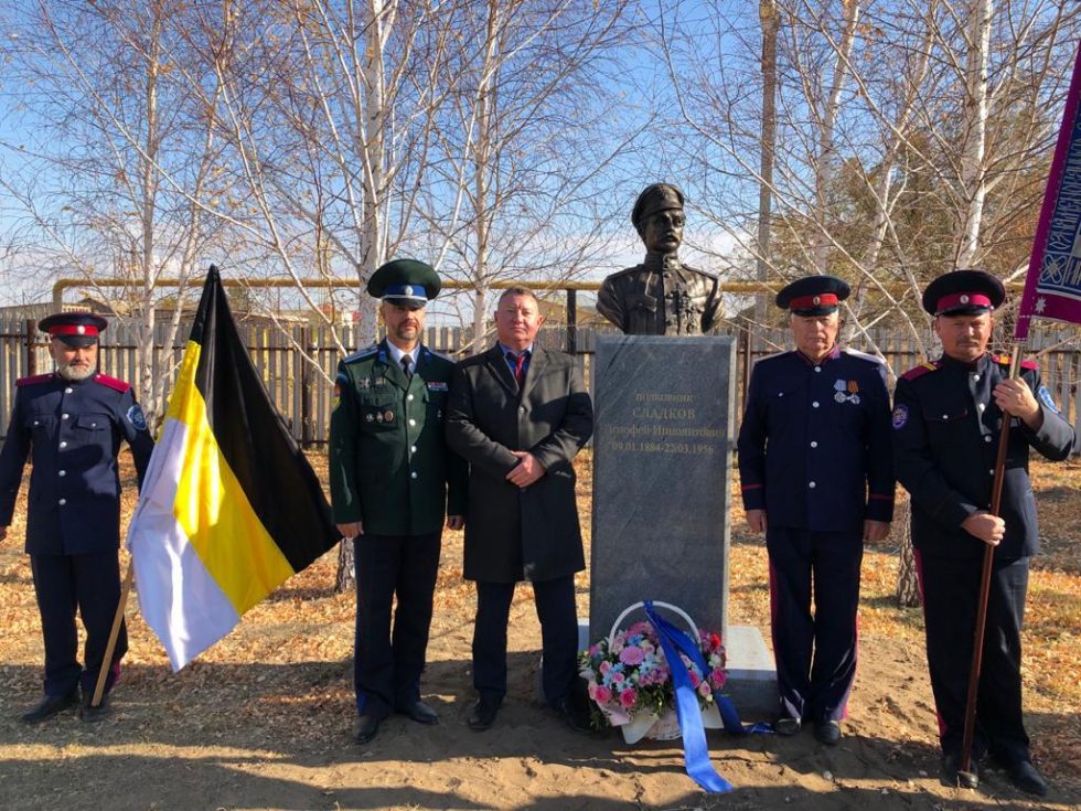 В селе Красное Оренбургской области казаки открыли памятник участнику Первой мировой и Гражданской войн Тимофею Сладкову, отряд которого уничтожил штаб 25-й дивизии вместе с ее командиром Василием Чапаевым.
