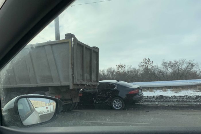 Как рассказали «Оренбург Медиа» очевидцы ДТП, сегодня днем, 5 декабря. На проезде Северном столкнулись грузовик и Jaguar. Престижная иномарка буквально влетела под правый борт грузовика. Автомобиль получил серьезные механические повреждения.