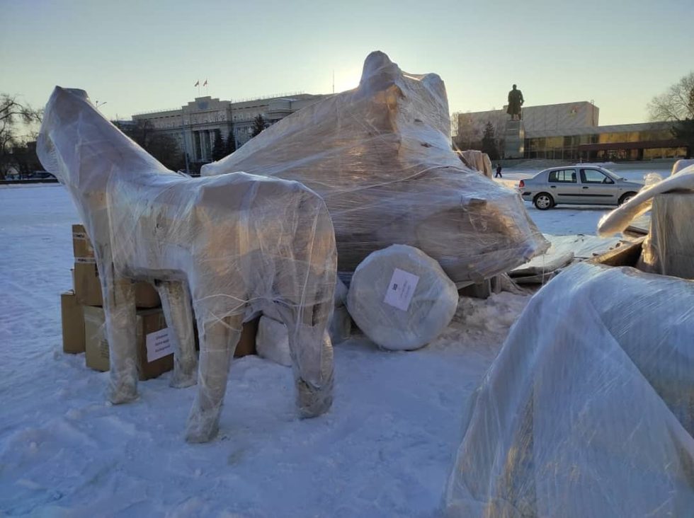 Сегодня же в центре начался монтаж каркаса большой горки и сборка деревянных ярмарочных домиков. Первая партия световых инсталляций прибыла из Санкт-Петербурга. Среди инсталляций — карета, запряженная двумя лошадьми. Также центр города украсит огромная елочная игрушка.