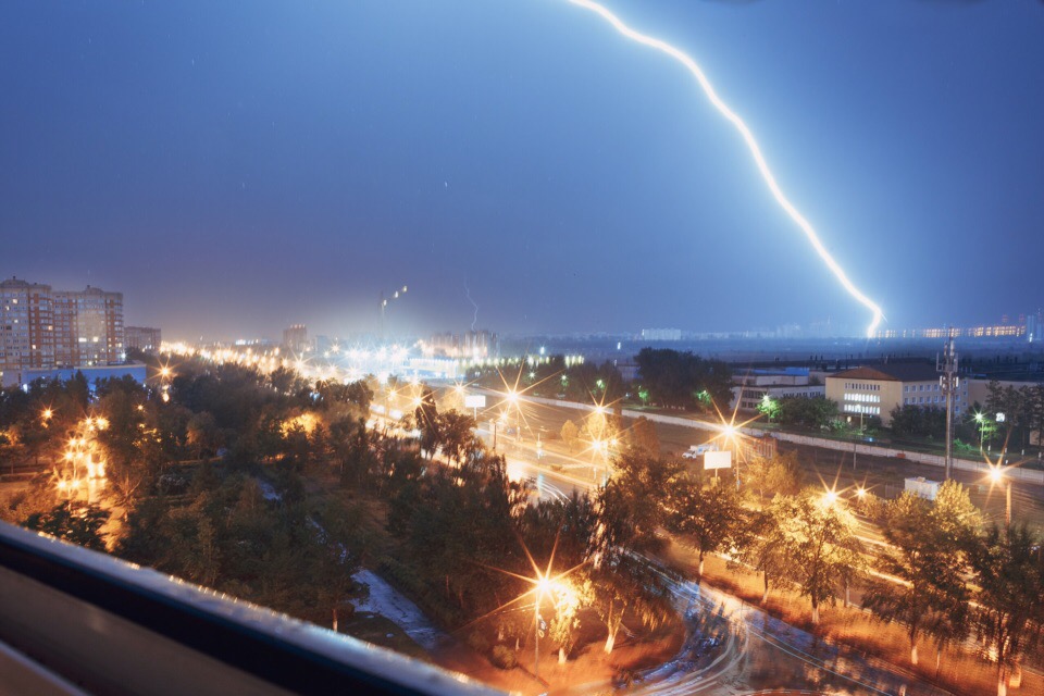 По территории Оренбургской области проходит холодный атмосферный фронт, который принёс в регион осадки, усиление ветра и понижение температуры. Вместе с тем жители областного центра сегодня ночью, 17 мая, наблюдали первую майскую грозу. Ее удалось запечатлеть на фото.