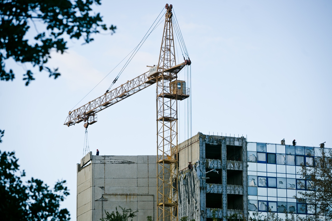 — Один этаж – это несколько видов конструкций. Помимо наружных стен, еще плиты перекрытия, колонны, ригели, внутренние стены и перегородки. Демонтаж идет поэтапно, согласно проектной документации, — рассказал специалист.