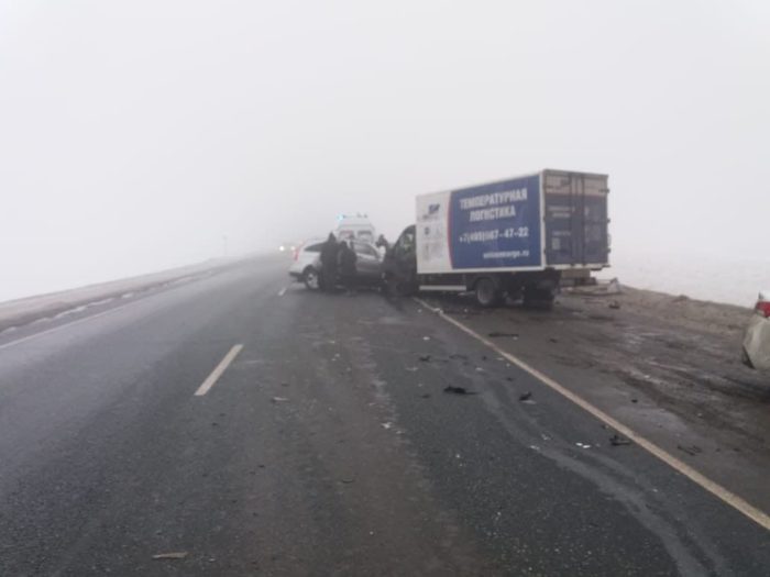 Во время ДТП на трассе стоял туман, что могло способствовать ухудшению видимости. По факту ДТП проводится проверка выясняются обстоятельства ДТП.