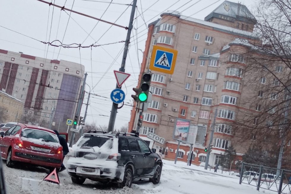 Дорожно-транспортное происшествие случилось на пересечении улиц Чкалова и Маршала Жукова Оренбурга. Дорогу не поделили Peugeot и Mitsubishi. Одна из иномарок протаранила указатель стоп-линии.