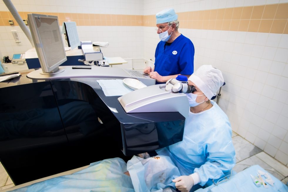 «Санькова! Проходите…» В операционной отделения лазерной коррекции зрения четыре специалиста – офтальмолог, операционная сестра, инженер и санитарка. Слаженный процесс отработан, как часы, клиника занимается коррекцией зрения с 1996 года. Обработка области вокруг глаз, переход на другой стол.