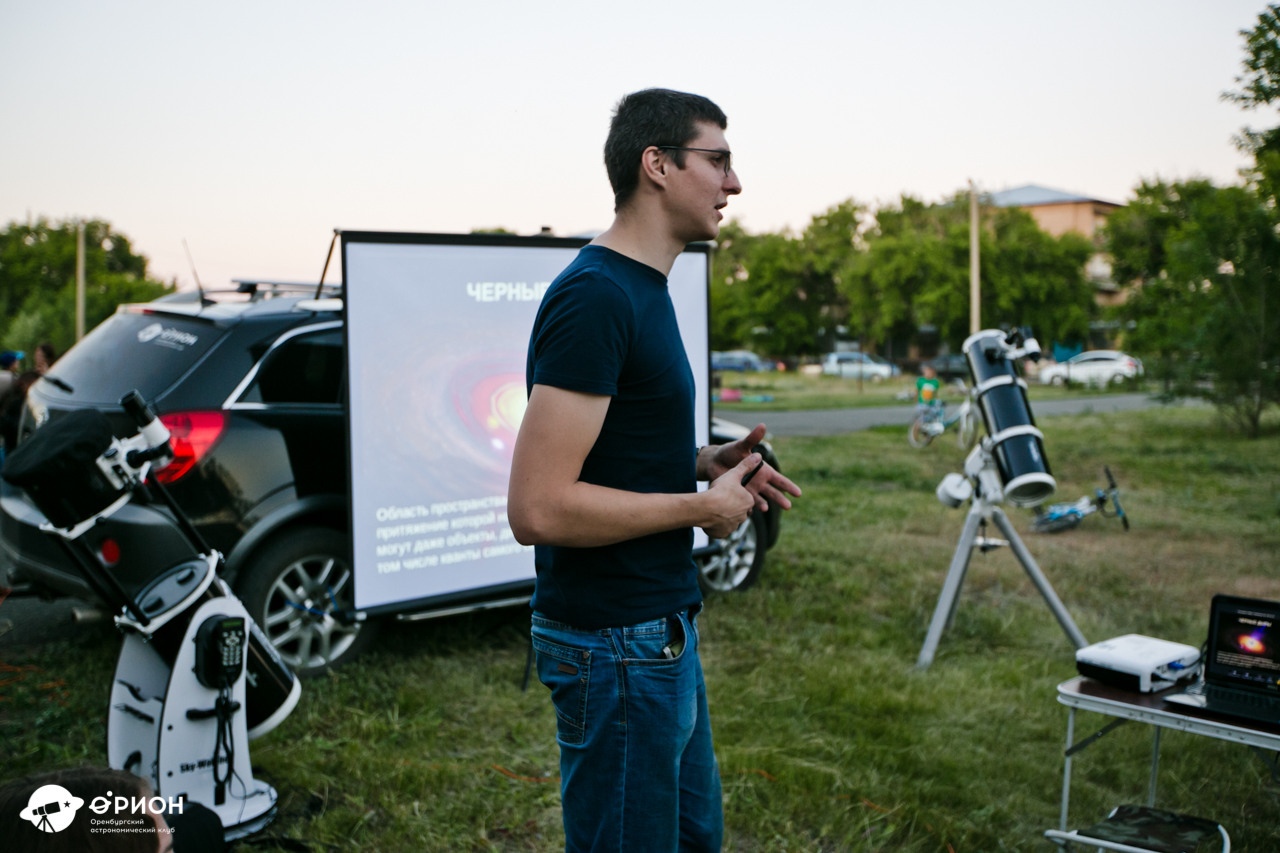 В поселке Караванный под Оренбургом 23 июня впервые прошла настоящая астрономическая лекция: проект «Оренбург Медиа» и астроклуба «Орион «Смотри на звезды» устроил выездную обсерваторию на площади прямо перед местным клубом.