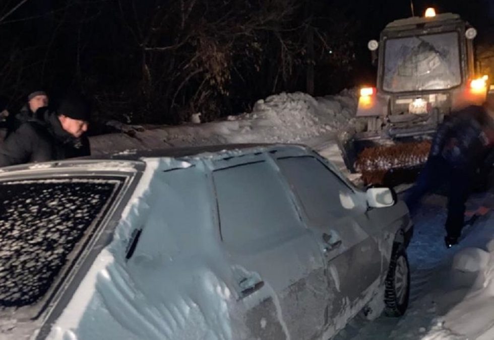 На сельской дороге в снегу застрял легковой автомобиль. В машине находилась семья из пяти человек. Транспортное средство заглохло и температура в салоне стала резко понижаться.