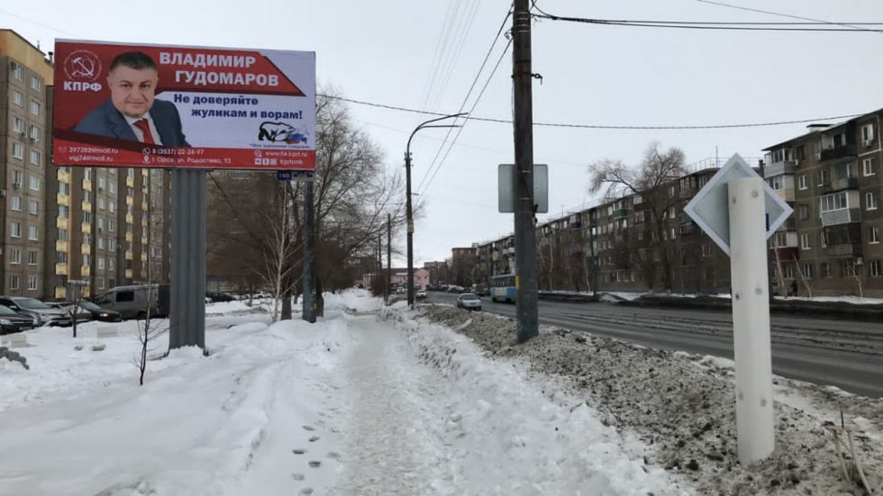 В Оренбургской области демонтировали установленный на территории Орска баннер коммуниста Владимира Гудомарова.