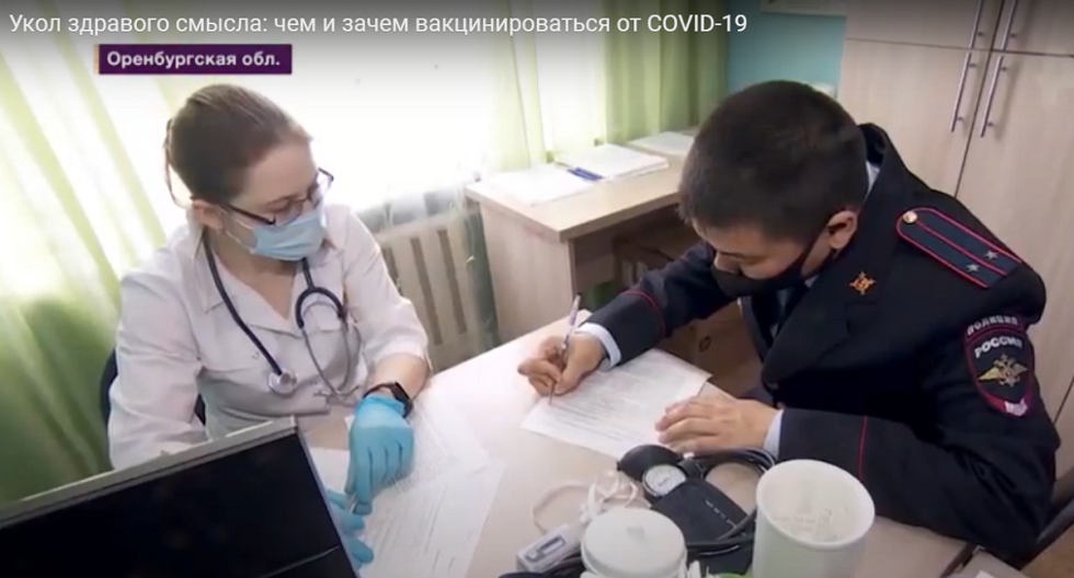 Сотрудники ГИБДД из Новоорского района Дарбек Шукумов и Анатолий Корецкий стали одними из героев сюжета о прививочной кампании от коронавируса.