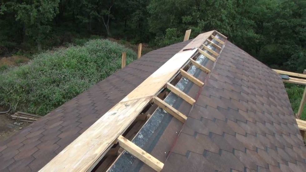 Конёк крыши имеет простую конструкцию, но предотвращает попадание влаги в пространство под кровлей. Благодаря этому продлевается срок службы крыши, а также обеспечивается целостность всех материалов кровельного пирога.