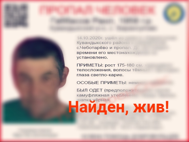 Напомним, 63-летний Раил Габбасов 17 октября 2020 года ушёл из дома в селе Барангулово в соседнее село Чеботарёво, но туда не вернулся. Родственники обратились в полицию. Житель Кувандыкского городского округа был объявлен в розыск. К поискам подключились волонтёры ПСО «ОренСпас».