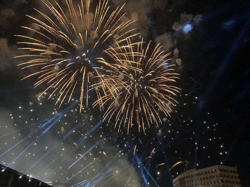 Перед фейерверком на центральной площади города прошел концерт, собравший порядка семи тысяч зрителей. Заполнены были не только трибуны, но и танцпол.