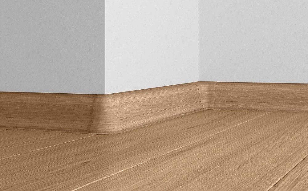 Плинтус деревянный напольный широкий позволяет защитить область стыка стены и напольного покрытия от проникновения сора и влаги, тем самым продлевая срок его службы. Планки скрывают зазоры, проводку и систему отопления. Однако выбор плинтуса следует осуществлять в зависимости от вида напольного покрытия, стилистики комнаты, особенностей эксплуатации помещения.