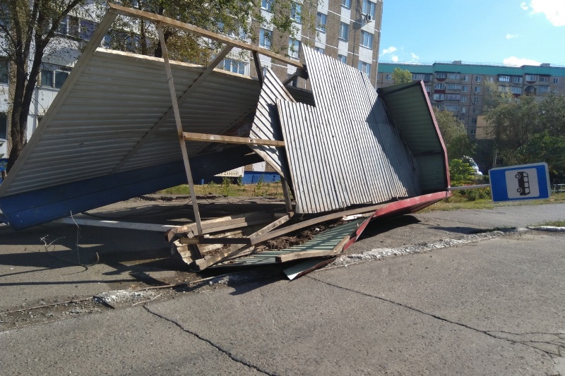 Не пощадил ветер и кровлю здания Лицея №8. С крыши сорвало несколько листов профметалла, которые приземлились на заднем дворе школы. На улице Салмышской рухнула остановка общественного транспорта. Аналогичный случай произошел и с одним из остановочных павильонов на улице Челюскинцев.