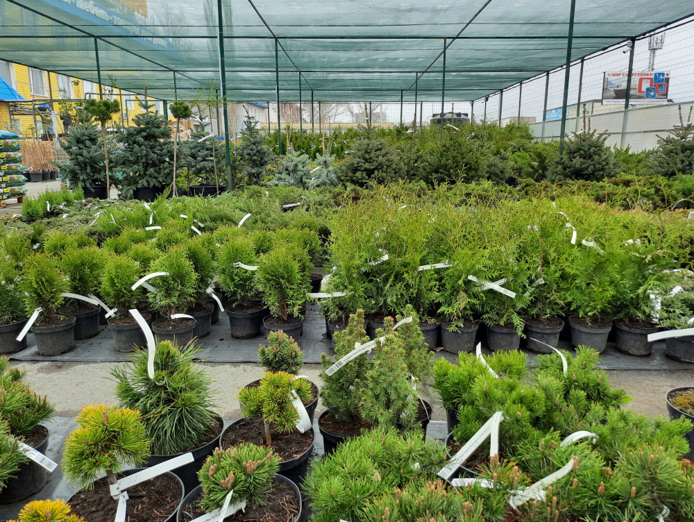 Широко представлены хвойные растения: ели, пихты, сосны. Особой популярностью у наших покупателей пользуются туи, как колоновидные, так и шаровидных форм. Огромный выбор можжевельников, таких, как можжевельник пфитзериана, горизонтальный, обыкновенный.