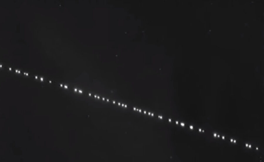 Первое время спутники движутся близко друг за другом. Поэтому они создают иллюзию «космического поезда».