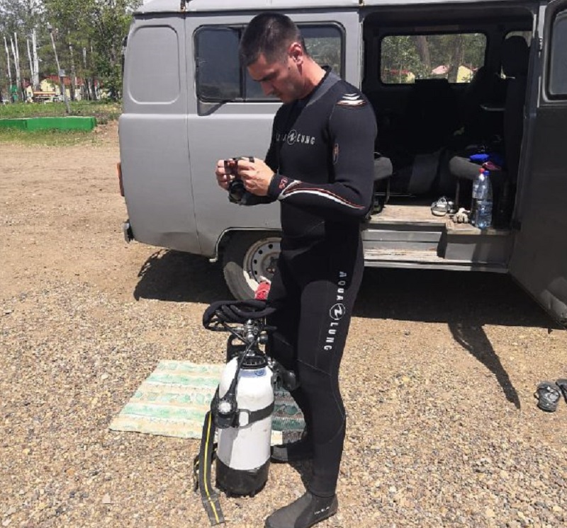 Первый водолаз погружается на дно в полной экипировке и проводит визуальный осмотр. Второй спасатель страхует его и контролирует ситуацию с берега, для того чтобы в любой момент оказать помощь.