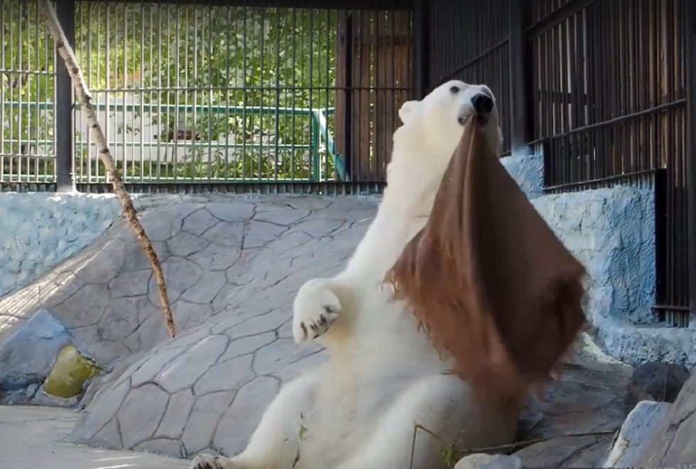 Видео звезды Красноярского парка флоры и фауны — белой медведицы Урсулы опубликовано в официальной группе «Вконтакте».