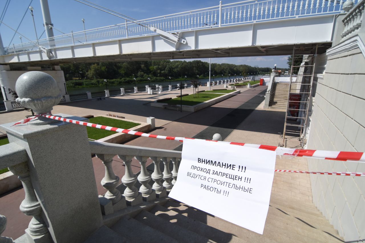 Подрядчику осталось остается докрасить опоры моста и верхнюю часть сооружения. Территория, где идёт ремонт, оцеплена лентой. Там же выставлены таблички, запрещающие проход.