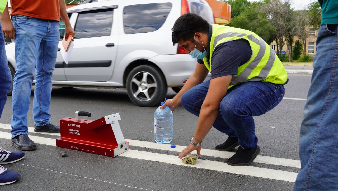 Специалисты проверили её светоотражаемость и геометрию. При помощи ретрорефлектометра была осмотрена её горизонтальная освещенность. Прибор показывает, соответствует ли ее яркость и световозвращение рабочим показателям.