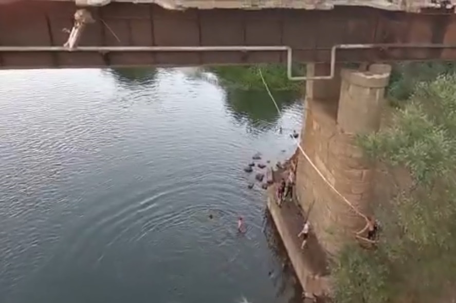 Видео с места опасных водных развлечений сняли очевидцы. Они комментируют, что в очередной раз под порами аварийного моста через Сакмару неизвестные повесили тарзанку. Целая компания подростков прыгает в воду в том числе с опор моста.