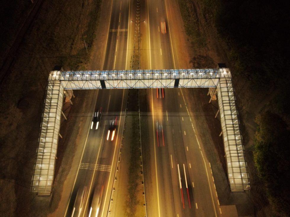 Ширина прохода каждой надземной конструкции составляет более двух метров, высота подмостового габарита до дорожного полотна – от пяти до шести метров. Переходы оборудованы специальными устройствами для подъема маломобильных граждан. В кабинках подъемников обустроено видеонаблюдение и связь с диспетчерской службой.