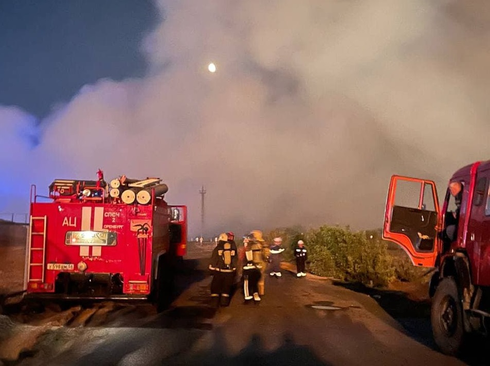 В Оренбургской области продолжают тушить пожар возле Газзавода. Там горят сухая трава и сера. На месте работают более сотни пожарных.