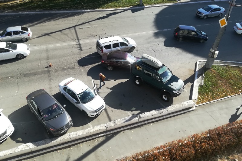 Неосторожный маневр спровоцировал тройное ДТП на проспекте Победы. У водонапорной башни столкнулись «Ларгус» и «Гранта». От удара один из автомобилей зацепил припаркованный внедорожник.
