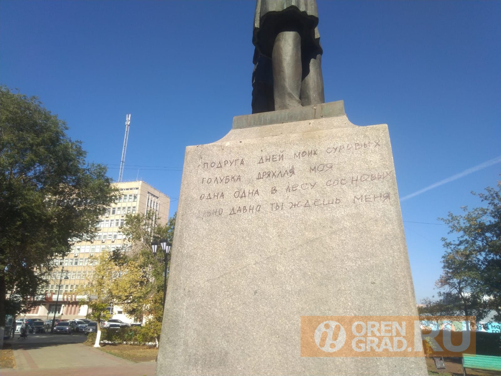 В центре Оренбурга постамент памятника Пушкину и Далю снова расписали стихами.
